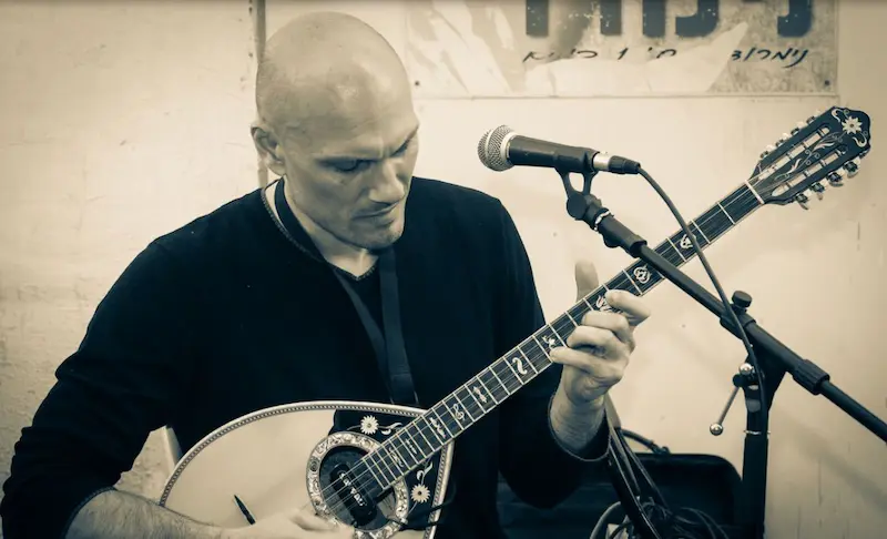 Dionysis Theodorou et son groupe jouent de la musique juive, grecque et originale au bouzouki. |